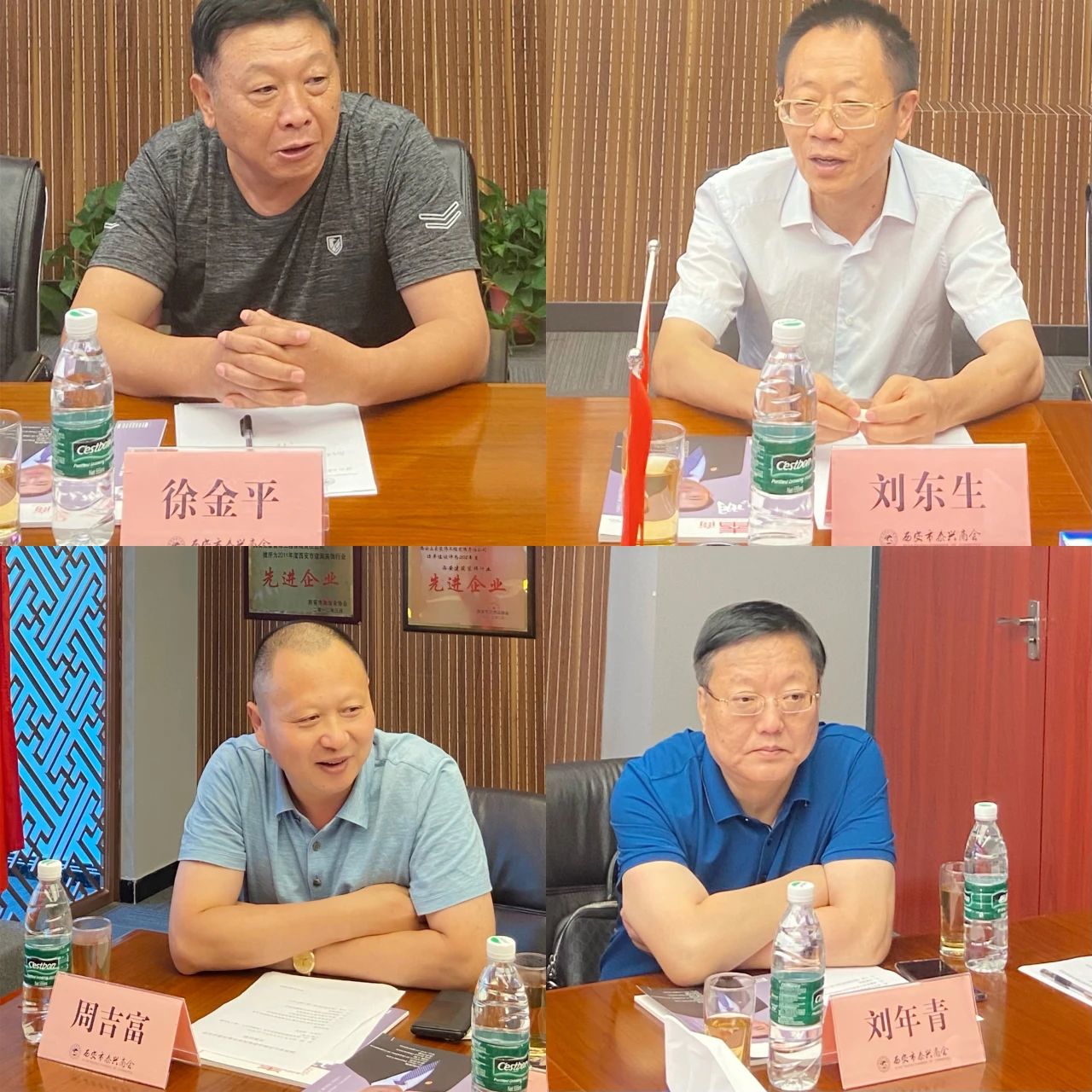 7月9日上午,陜西省江蘇商會(huì)會(huì)長(zhǎng)胡德林、監(jiān)事長(zhǎng)李亞輝、副會(huì)長(zhǎng)吳濟(jì)翔、沈九龍、陸明峰、夏春祥,秘書(shū)長(zhǎng)劉飛一行蒞臨集團(tuán)考察交流。