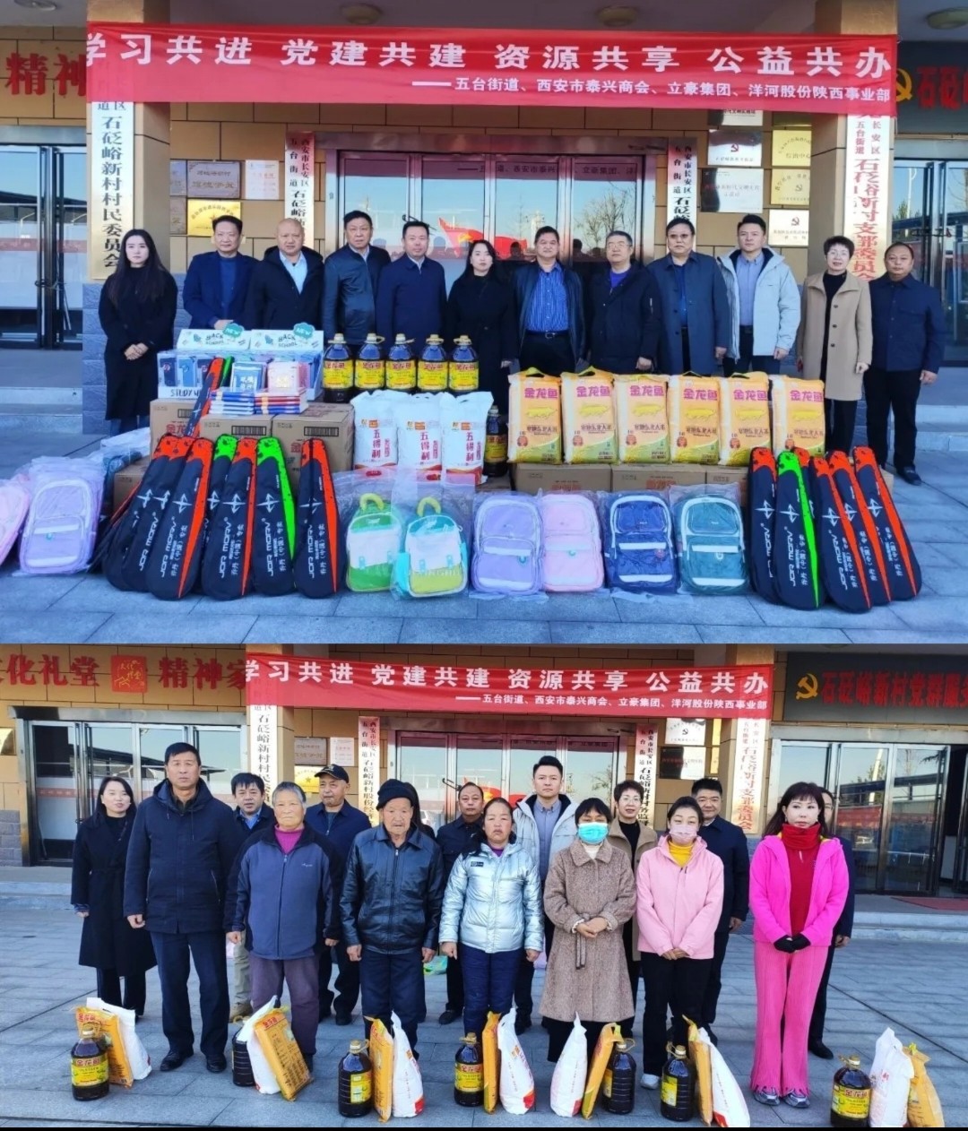11月29日,為實現(xiàn)黨組織優(yōu)勢互補(bǔ)、資源共享的黨建新格局,立豪集團(tuán)聯(lián)合五臺街道、西安市泰興商會、洋河股份陜西事業(yè)部開展“學(xué)習(xí)共進(jìn)、黨建共建、資源共享、公益共辦”主題活動,為五臺街道困難老黨員、困難群眾、退役軍人、留守兒童送溫暖獻(xiàn)愛心。五臺街道黨工委副書記韓盈、立豪集團(tuán)董事長、西安市泰興商會會長桂志明、西安市泰興商會企業(yè)代表、五臺街道各村支書、群眾代表共50余人參加活動。